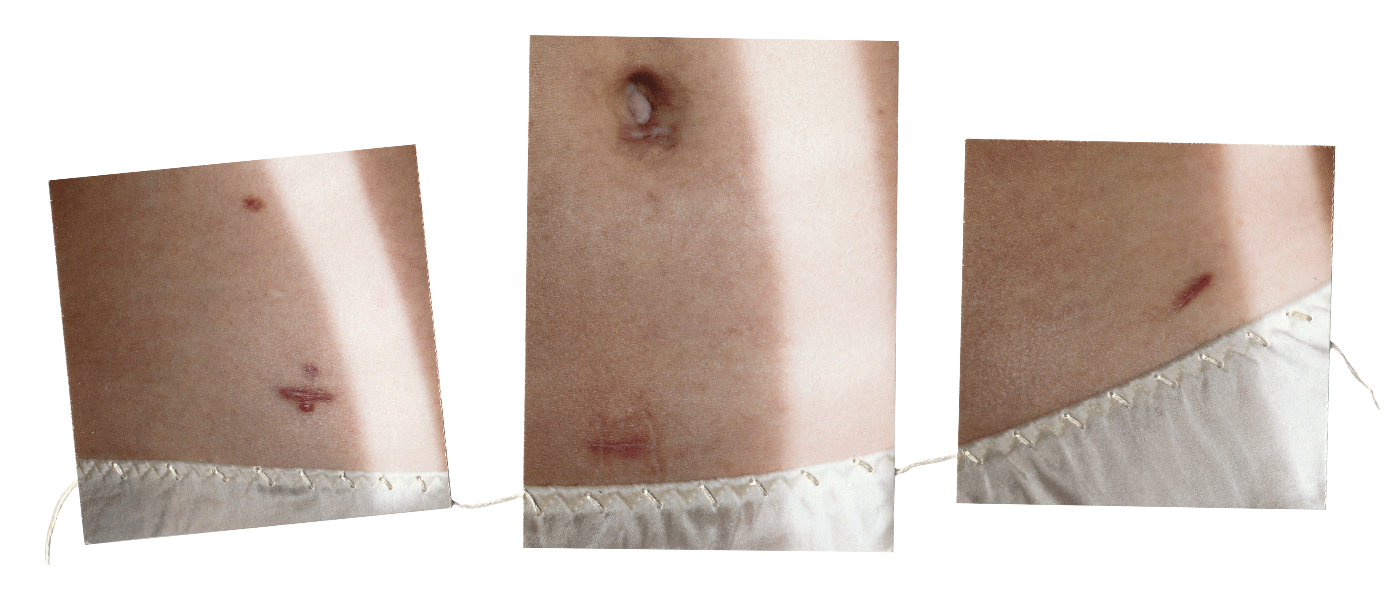 I focused on actual scars which represent the absence of something that has been removed and which I then made invisible restitching on the prints with cotton threads.